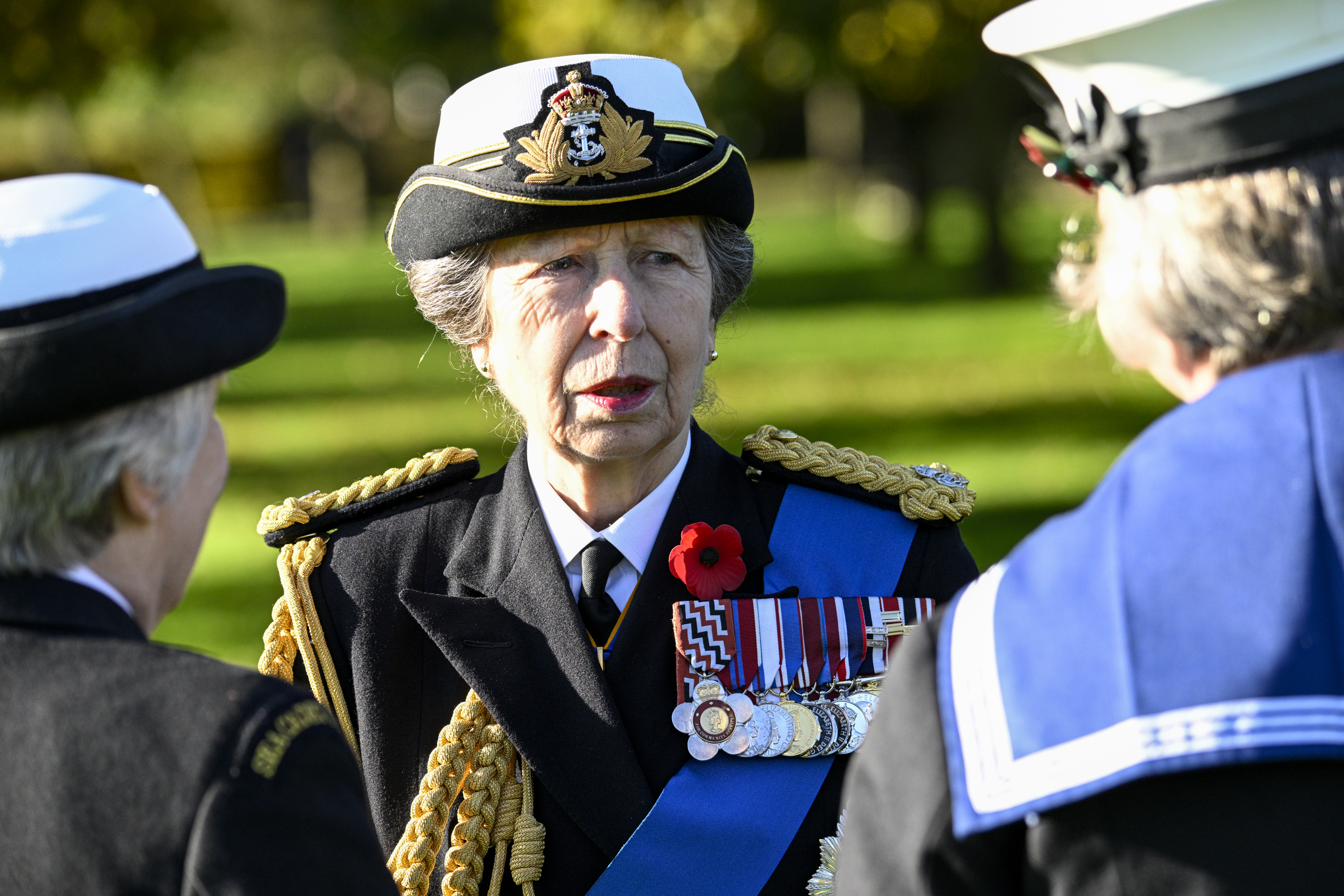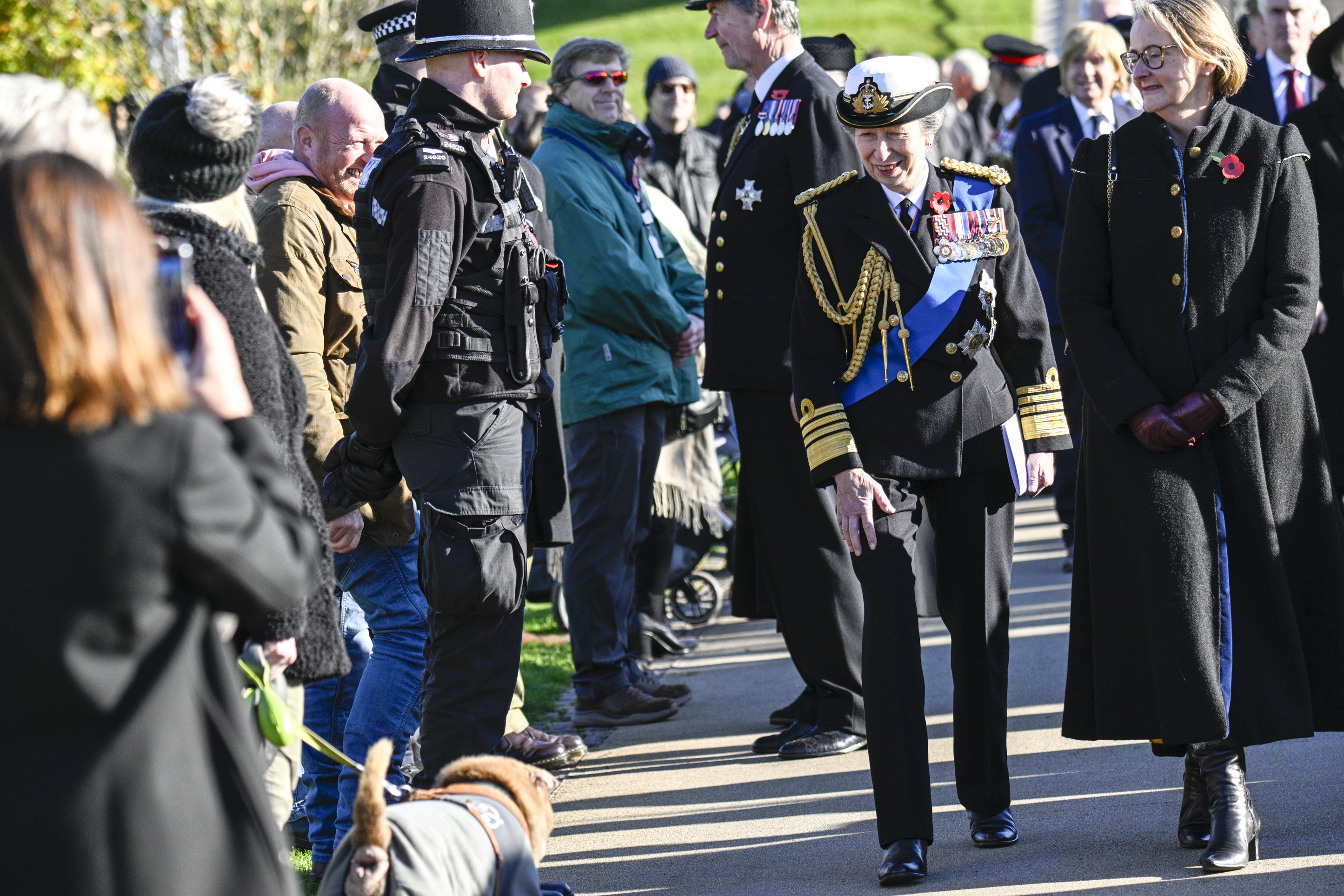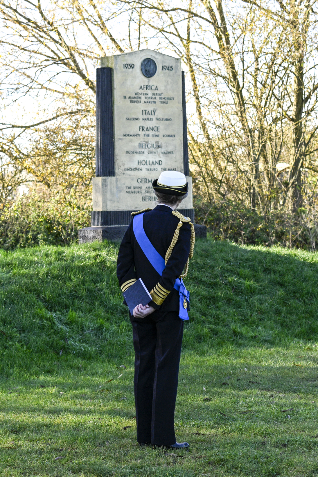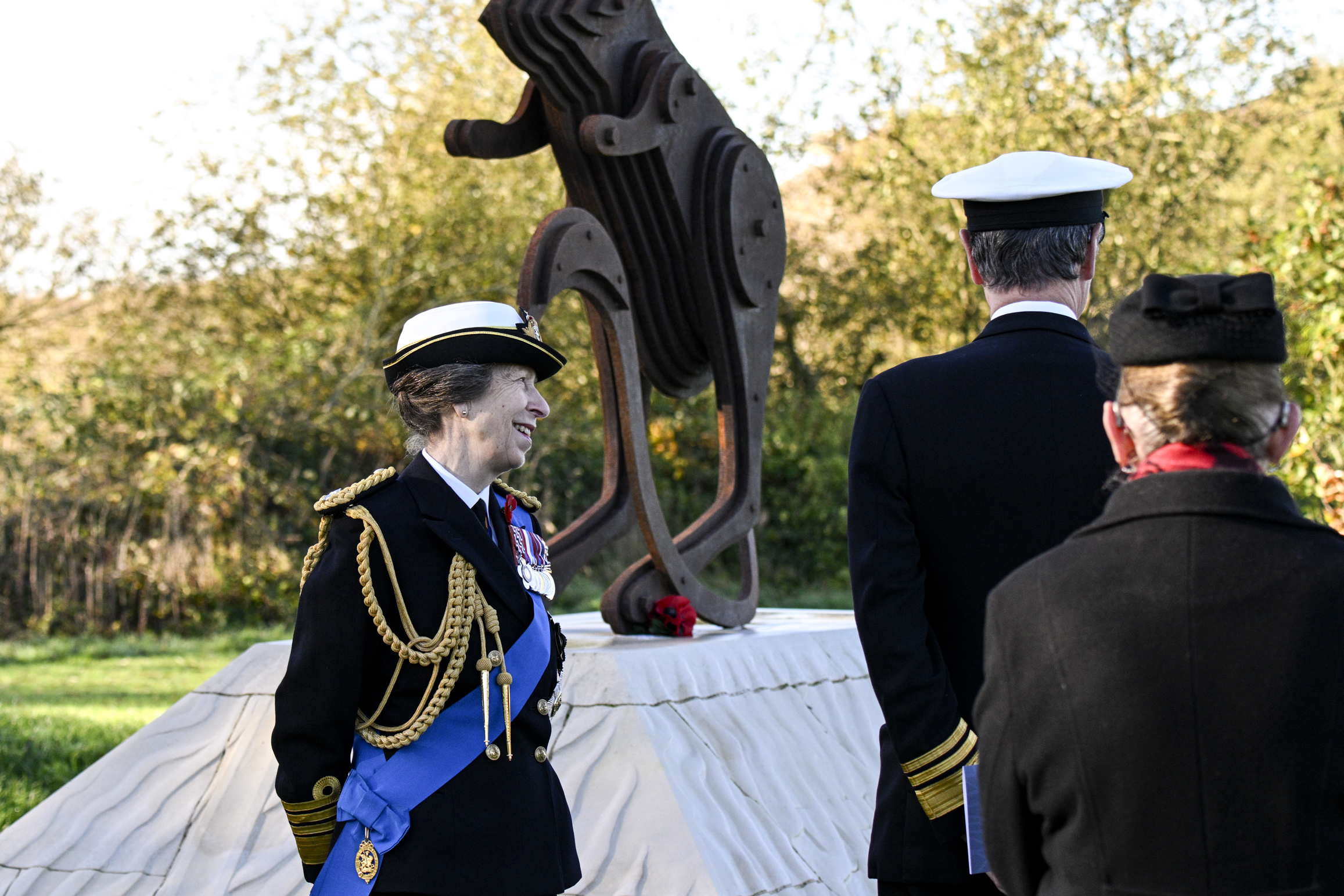 The service was led by The Right Reverend Libby Lane, Bishop of Derby, and included an Act of Remembrance, incorporating a two-minute silence at 11am. At the conclusion of the Act of Remembrance, HRH The Princess Royal laid a wreath on the central plinth of the Armed Forces Memorial. The wreath sat adjacent to the giant bronze wreath which captures a shaft of sunlight at 11am on 11 November each year, thanks to a carefully designed gap in the imposing Portland stone walls of the memorial.
